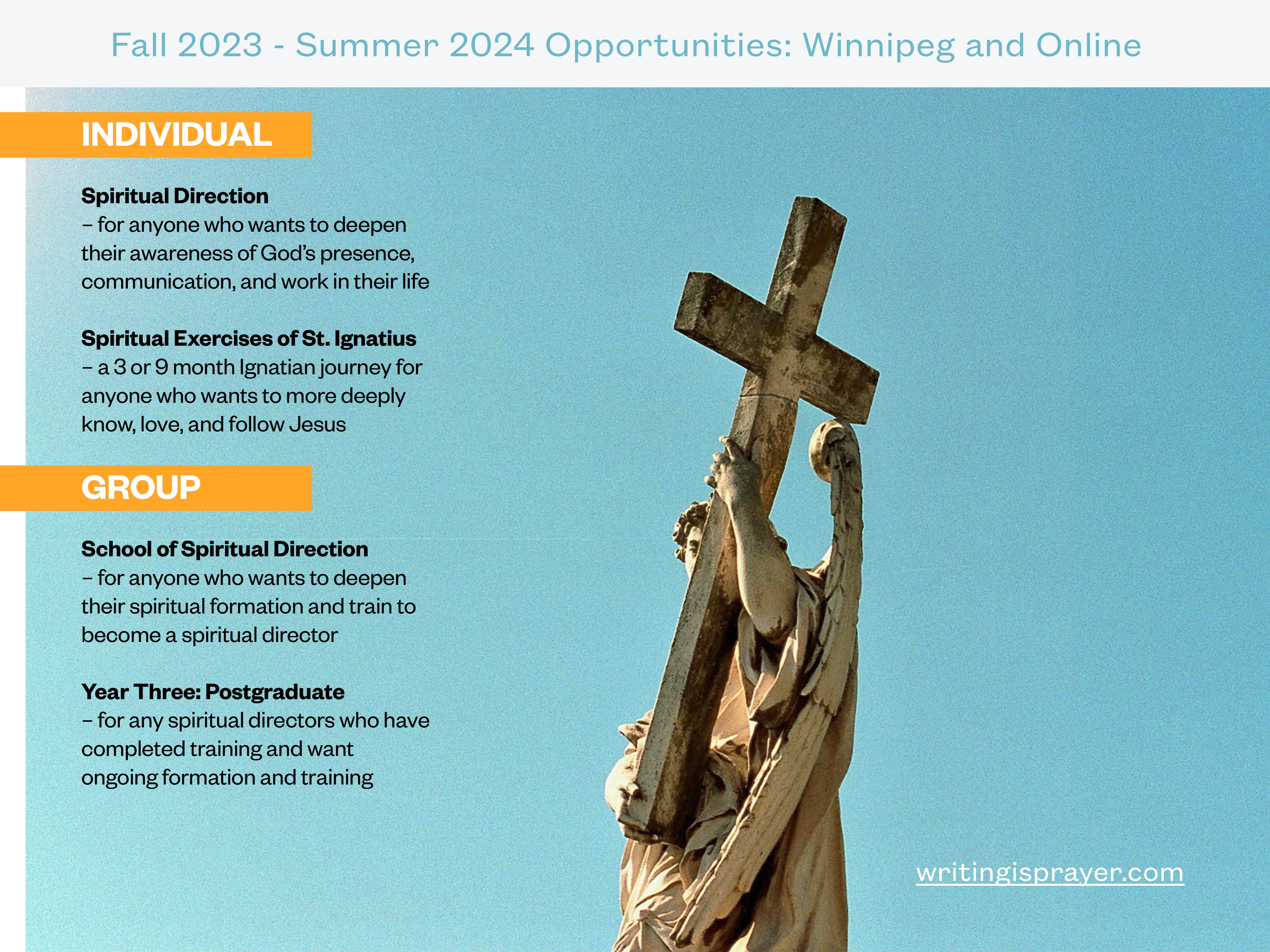 All of the above are available in person in Winnipeg and online (via Zoom). For more information including cost, practicalities, and the like: